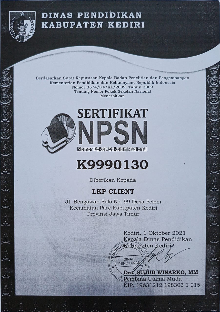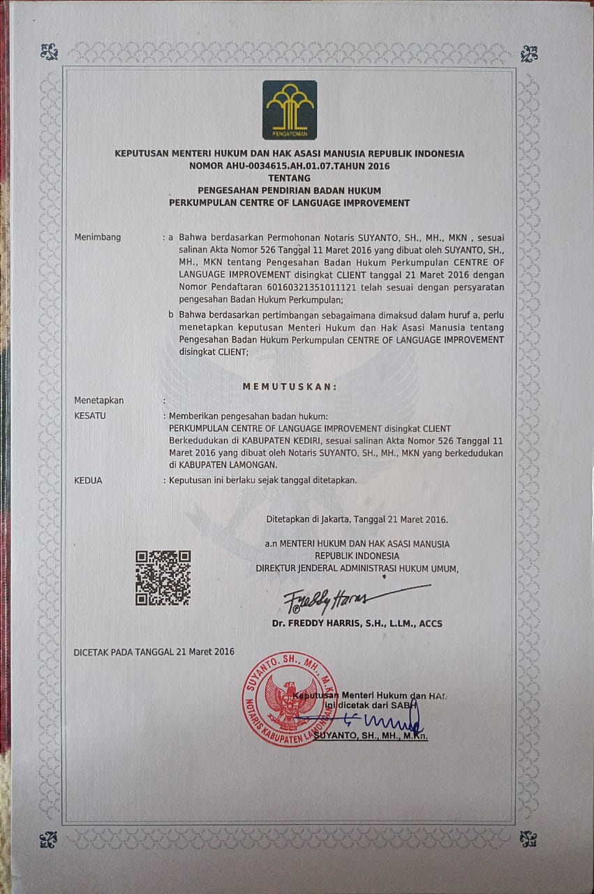 Bukti bahwa CLIent berdiri secara sah di Kampung Inggris Pare, Kediri